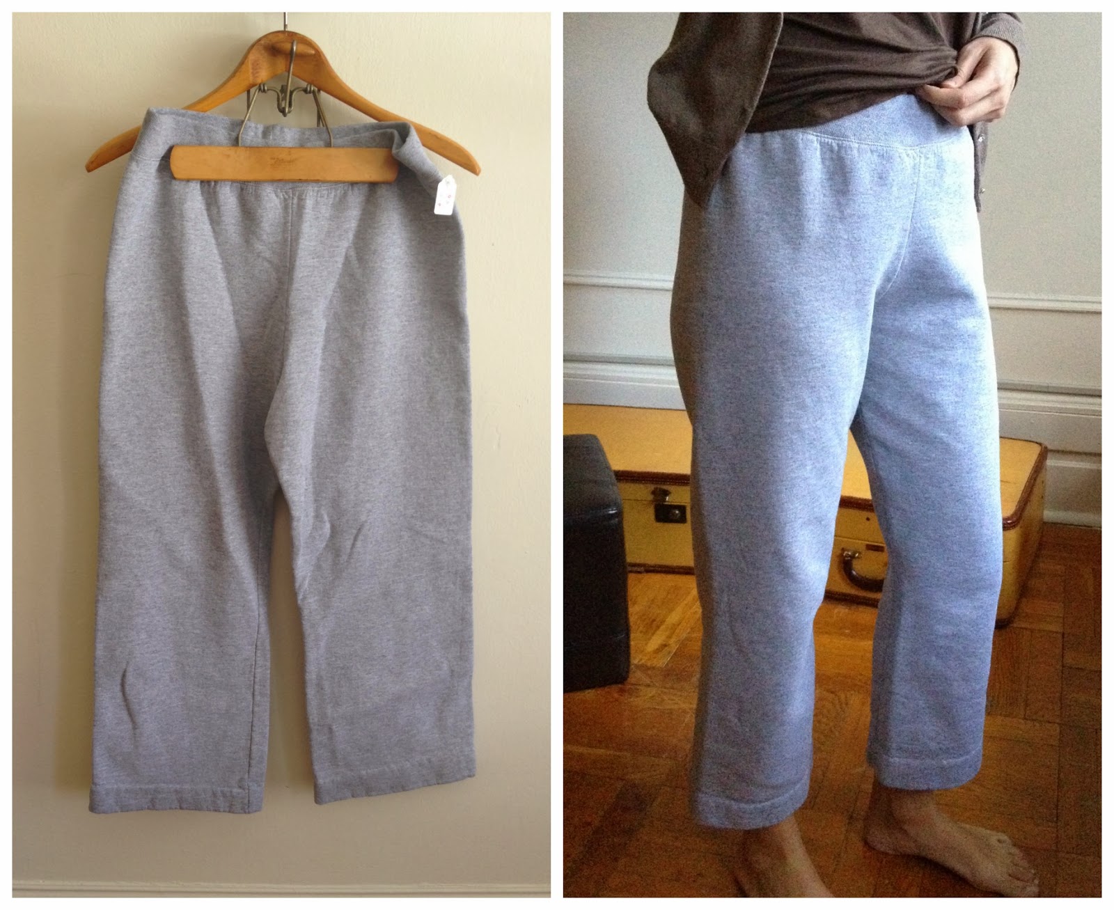 So, I found these pants in my last thrifting spree for $2 (half off day). They are a heavy polyester knit that holds its shape really well and at size 20, I had lots of wiggle room to transform these into some pretty cool pieces (even if I do say so myself).