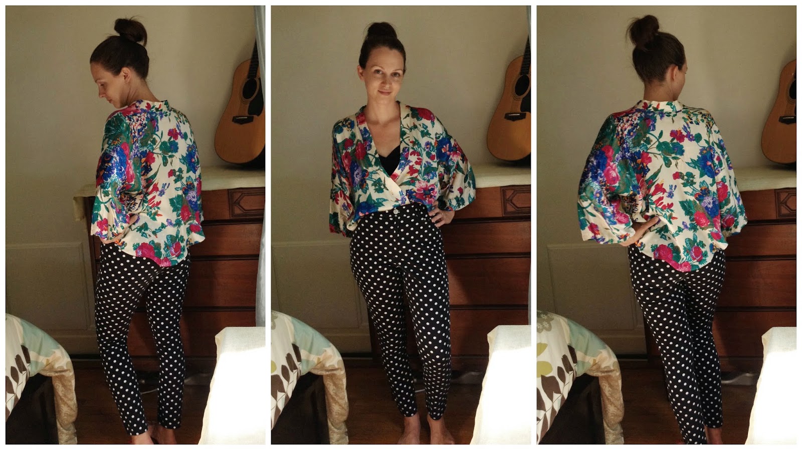 And what can I say? Silk. Floral. Robe. I see a kimono jacket and a breezy top in my near future ;). $4.50!!!